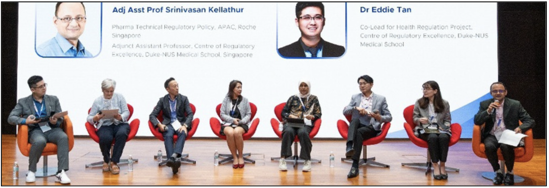 From Left to Right: Asst Prof Eddie Tan (Duke-NUS Centre of Regulatory Excellence), Dr Maria Cristina Galli (Formerly ISS, Italy), Dr Yoshiaki Maruyama (PMDA Japan), Ms Christine Ho (HSA Singapore), Mrs Tri Asti Isnariani (Indonesian FDA), Mr Morakot Papassiripan (Bureau of Drug Control of Food and Drug Administration, Thailand), Ms Chia-Ping Liu (Taiwan FDA), Adj Asst Prof Srinivasan Kellathur (Roche Singapore)